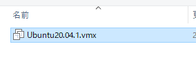 解凍したフォルダを選択し、「Ubuntu20.04.1.vmx」を開く。